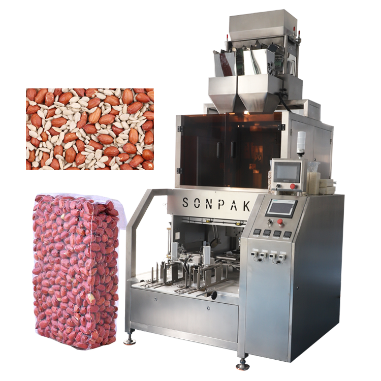 適用于瓜子、花生米等形狀均勻、流動性較好的顆粒物料的真空整形包裝。全自動化,有效節約生產成本,能自動取袋、送袋、開袋、上袋、充填、整形抽真空、封口、成品輸出。